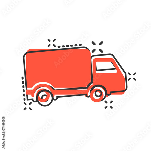 Delivery truck icon in flat style. Van vector illustration on white isolated background. Cargo car business concept.
