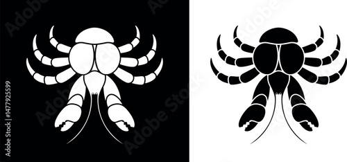 A black silhouette of an alien like figure with long legs and large eyes on a white background image