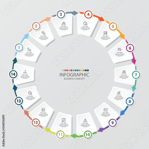 Infographic 14 options or step for presentation. Business icons concept.