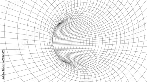 Tunnel or wormhole. Digital 3d wireframe tunnel. 3D tunnel grid.  Background abstract vector image