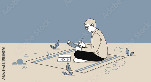 Person Writing And Reading Book Outdoors, Creative Expression And Calm Summer Day