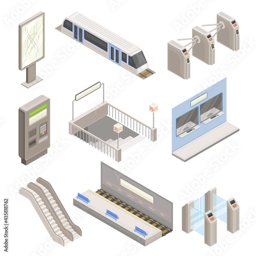Subway cars isometric icon set