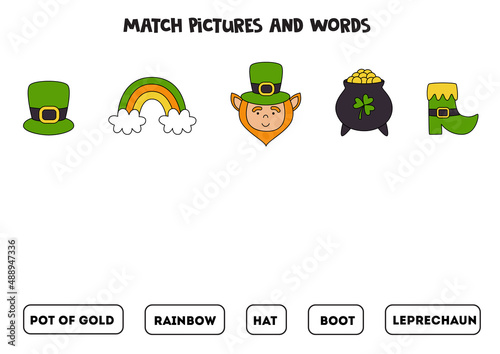 Happy Saint Patricks Day typography icon with shamrock. Hand sketched celebration quotation for poster, web design, banner, card, postcard, event icon logo or badge. Vector illustration.