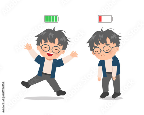 Sleepy Tired Person Is Going to Sleep in Bed , Vector Cartoon Stick Figure Illustration
