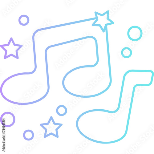 Vector illustration of various musical symbols (clefs, rests, sharps, flats), notes, and a staff with treble and bass clefs.