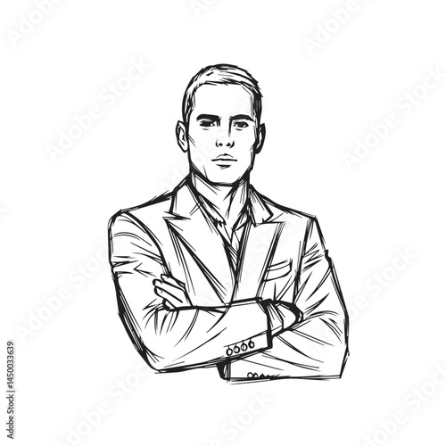 Young smiling man with arms folded. Confident handsome male character or businessman. Casual person mascot for web. Vector cartoon illustration isolated on white background.