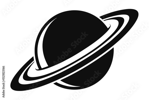 A stylized planet with multiple rings against a white background