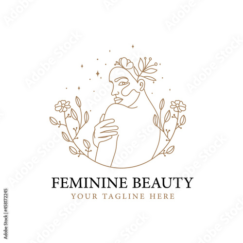 Beauty women face feminine symbol for salon, cosmetic, skin care and spa. logo design and business card