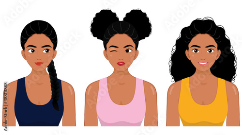 Vector illustration set of female portraits with facial masks wrapped with hair towel in pink color