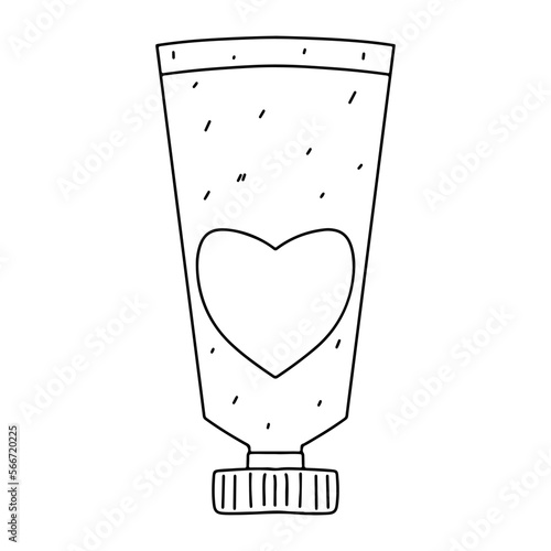 Female hands apply cream from a tube. Hand cream. Routine skin care. Daily organic cosmetics. Flat illustration. Vector