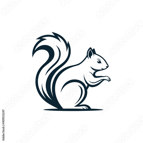 Stylized Squirrel Silhouette: A minimalist black silhouette of a squirrel, elegantly designed with a stylized bushy tail and upright posture.  The design is simple yet expressive.