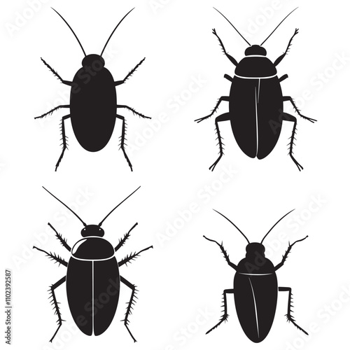 A sleek cockroach silhouette with long, slender antennae, six spindly legs, and a slightly curved body. It exudes simplicity, emphasizing the iconic shape and distinct profile.