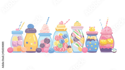 Colorful Candy Jars Design Flat Vector Illustration