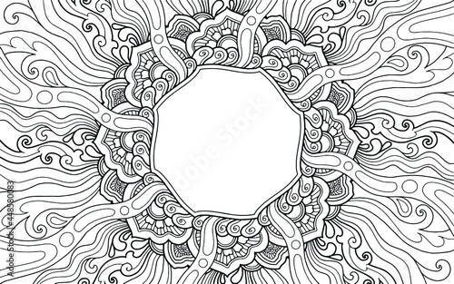 Art Deco elegant frame with sunburst and geometric patterns in beige and grey, providing a stylish border for text or design.