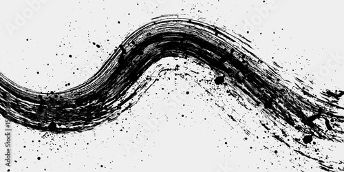 Abstract Black Ink Splash on Grungy Halftone Dotted Background - Distressed Paint Splatter Design Element Texture