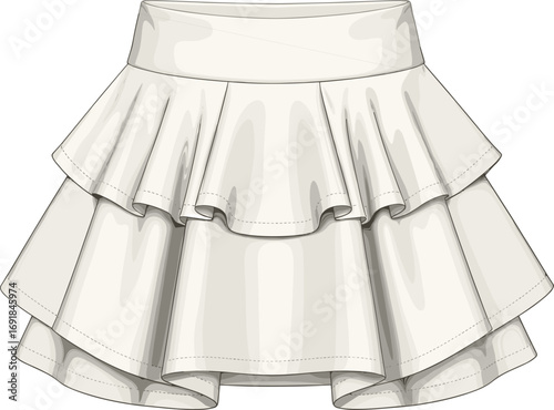 White tiered ruffled mini skirt with elastic waistband detail vector illustration