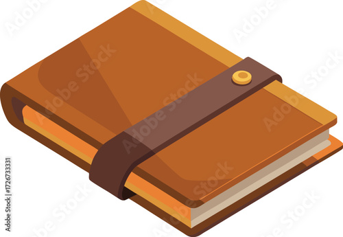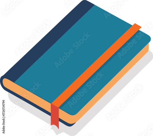 Isometric teal notebook with orange elastic strap vector illustration scalable eps graphic