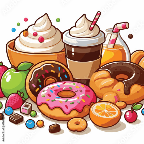 Delicious Donut with Red Glaze - A Sweet Treat Illustration.