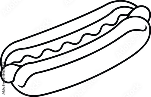 Sketch of hot dog with sausage and mustard sauce. Vector fast food hand drawn line art and cartoon illustration isolated on a white background. fresh sandwich with sauce and green salad