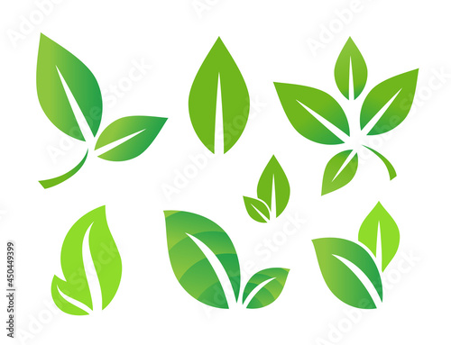 Green color leaf vector logo or icon set. Isolated leaves on white background.
