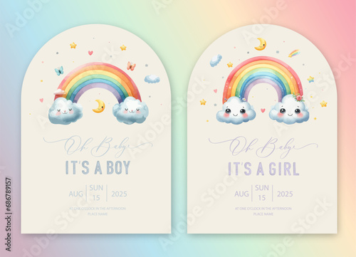 Luxury invitation card design vector set. Elegant wedding card with little star moon sun and space decorative on watercolor navy blue background. Design illustration for cover, poster, gala.