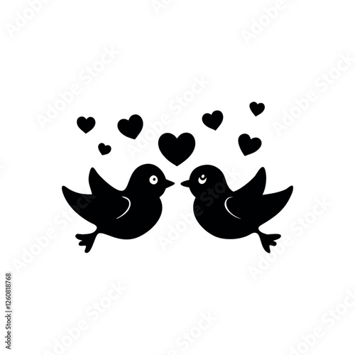 vector silhouette of a lovebird sitting closely with another, heart-shaped composition, minimal vector art, white background