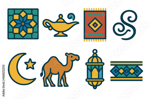 Miniature Icons Grid. Solid, filled icons set of organizing decorative miniatures: ceramic animal, action