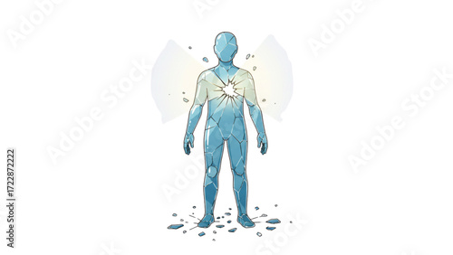 Stick figure radiating light and standing on a ground The graphic emphasizes potential ideas and innovation Minimalism meets bright creativity