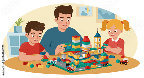 Child's Game Of Skill: Building Blocks Tower Illustrating Early Development And Fun Activities
