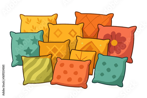 Realistic cushion. 3D white bed and sofa pillows. Collection of round and square or roll interior decorations. Isolated piles and stacks of classic feather or modern synthetic accessories, vector set