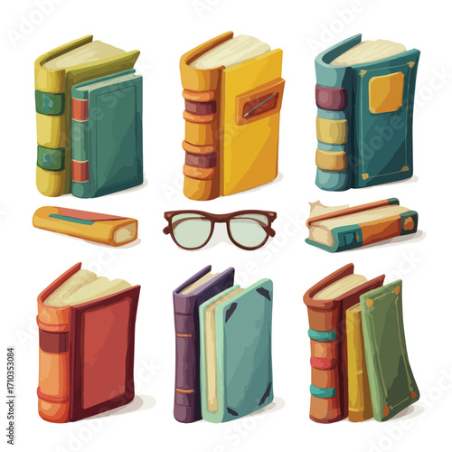 Six collections of books of different formats and with different covers. Vector set