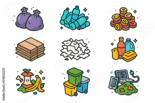 Set of Black and White Safety and Recycling Icons – Environmental Symbols
