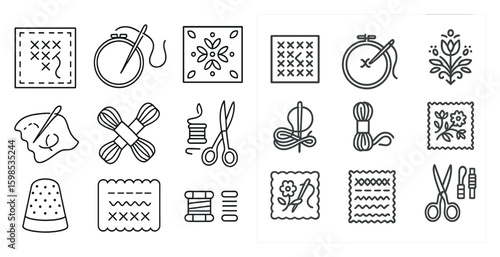 sew outline icons set. sew thin line icons pack included sewing craft, knitting neddles, pin sew, buttonhole vector.