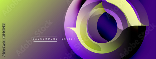 Abstract design features vibrant purple, yellow gradients. Dynamic lines intersect creating modern visual effect. Smooth transitions, bold shapes dominate composition.