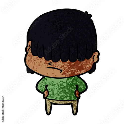 distressed sticker of a cartoon boy with untidy hair