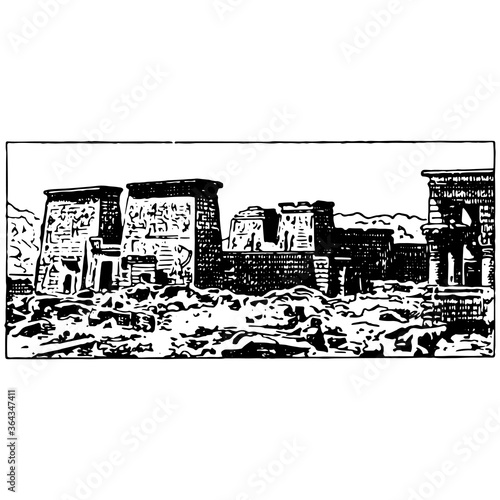 A large Ancient Egyptian temple complex - Luxor Temple - Stock Illustration