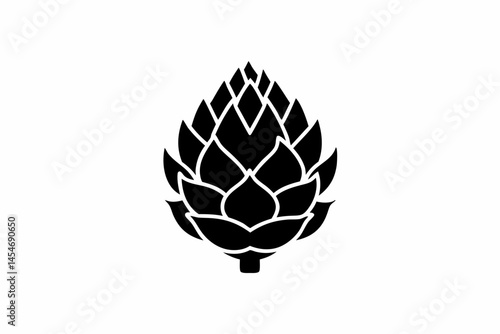 A striking black and white illustration of an artichoke s form a botanical silhouette