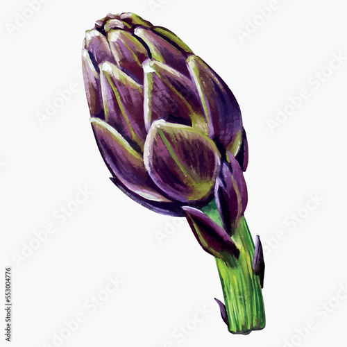 Illustration of green artichoke buds vegetable plant food healthy eating vegan diet ingredient fresh raw