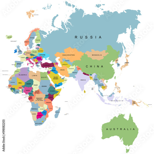 eurasia countries map. vector of eurasia map. europe and asia continente map.
