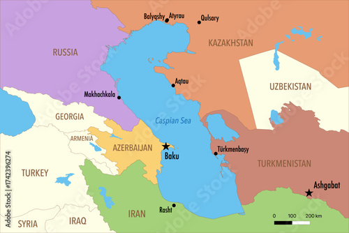 Vector Map of the Caspian Sea Highlighting Surrounding Countries