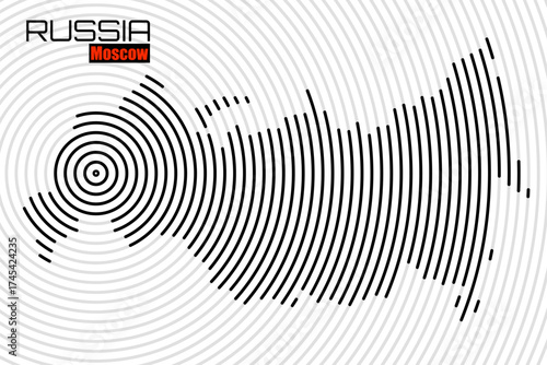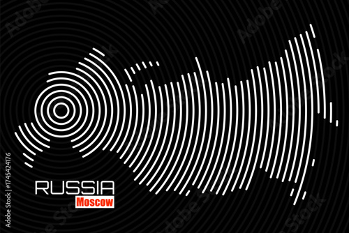 Abstract Russia map of radial lines. Russian Federation. Marked Moscow on map. Vector illustration