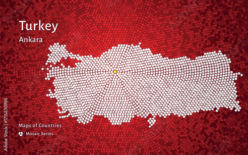 Stylized Red Mosaic Map of Turkey with Capital Ankara