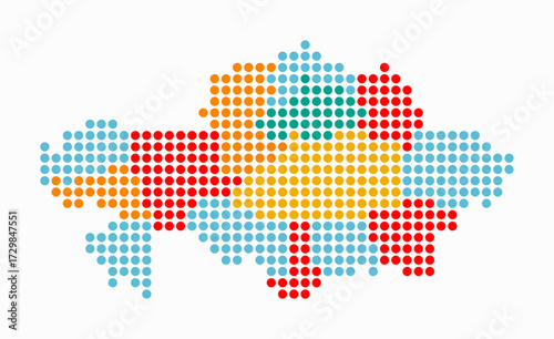 Kazakhstan dotted map. Digital style map of the country on white background. Kazakhstan shape with circle dots. Colored dots style. Large size circles. Artistic vector illustration.