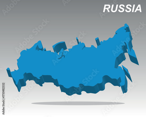 Trendy 3D map vector of Russia for modern infographics. A geometric extruded outline of Russia for global data visualization and travel in Russia