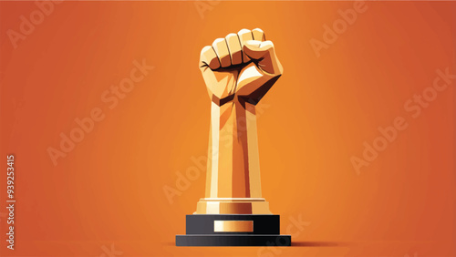 Illustration of a fist with a ribbon banner for labor day, symbolizing worker's rights, unity, and labor movement