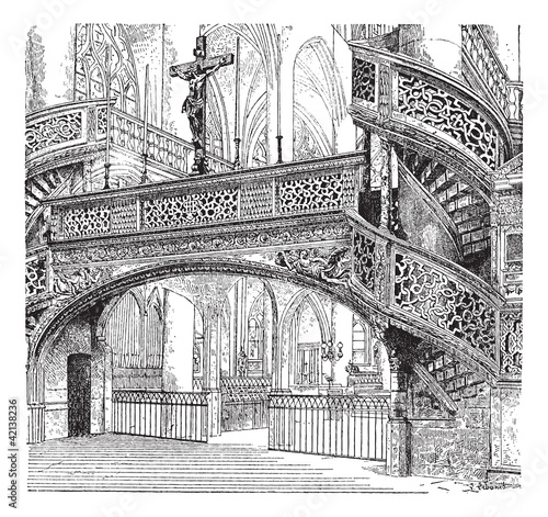 Elegant Church Interior with Rood Screen in Continuous Line Draw