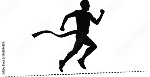 Silhouette of running athlete crossing finish line, marathon victory, sports success concept illustration