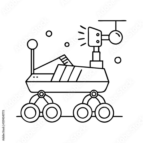 Outline drawing of a six-wheeled Mars rover with a robotic arm space exploration