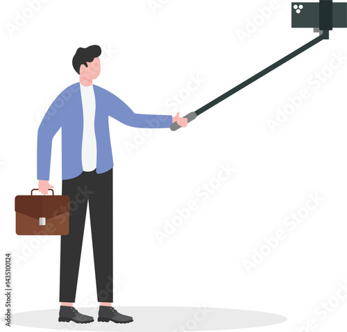 Vlogger taking selfie with a selfie stick vector illustration