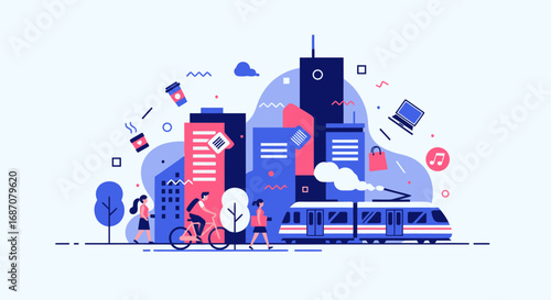 Activity landscape in city park. Concept illustration for working, freelancing, studying, education, work from home. Vector illustration in flat cartoon style